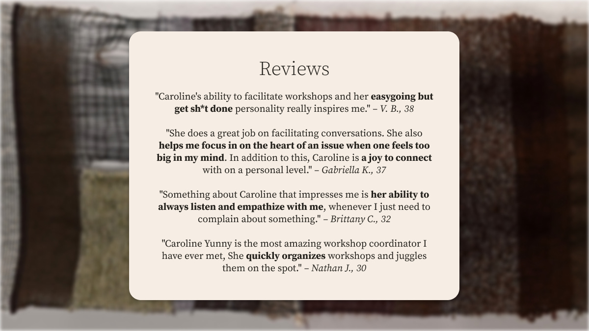 additional reading that can help: this article on the qualities of consistency i’m digesting by John Gronski.